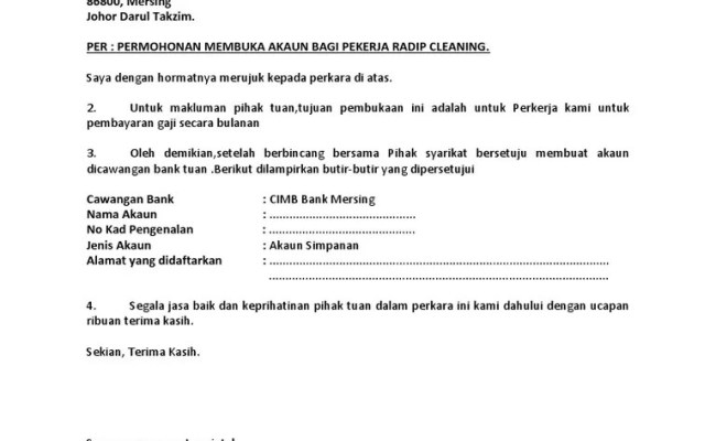 Contoh surat buka akaun simpanan untuk pekerja contoh resume.